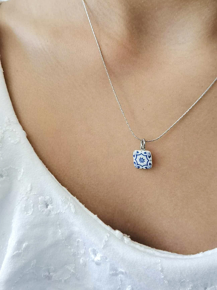 Um delicado quadrado de porcelana feita à mão, com 8mm de puro detalhe, estampado com um padrão inspirado nos azulejos das ruas de Lisboa. Cada peça é única — uma homenagem à beleza intemporal da cidade.