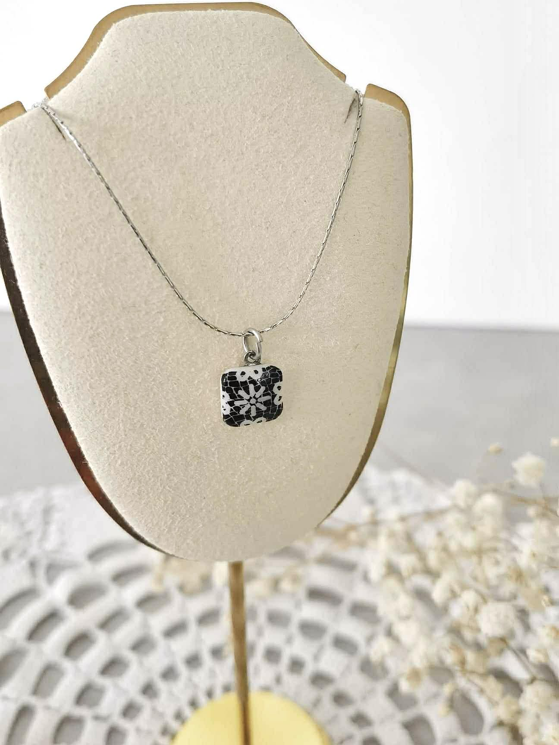 A corrente é em aço inoxidável de malha fina (0,7 mm), anti-alérgica e sem níquel, com extensão ajustável (40 cm + 10 cm) para um uso confortável e versátil.A calçada original pode ser encontrada ao vivo na Praça do Cais do Sodré — Lisboa, Portugal.