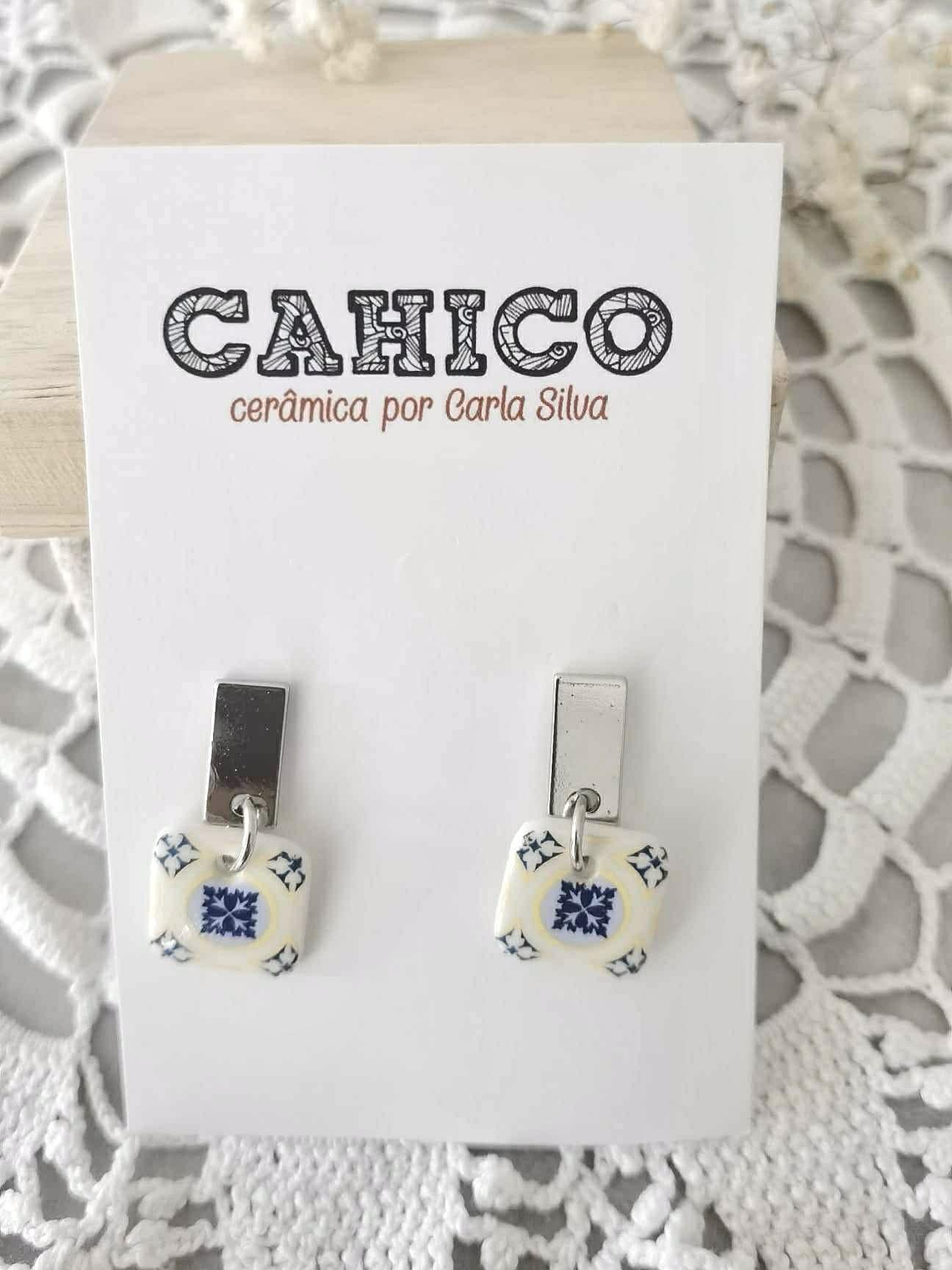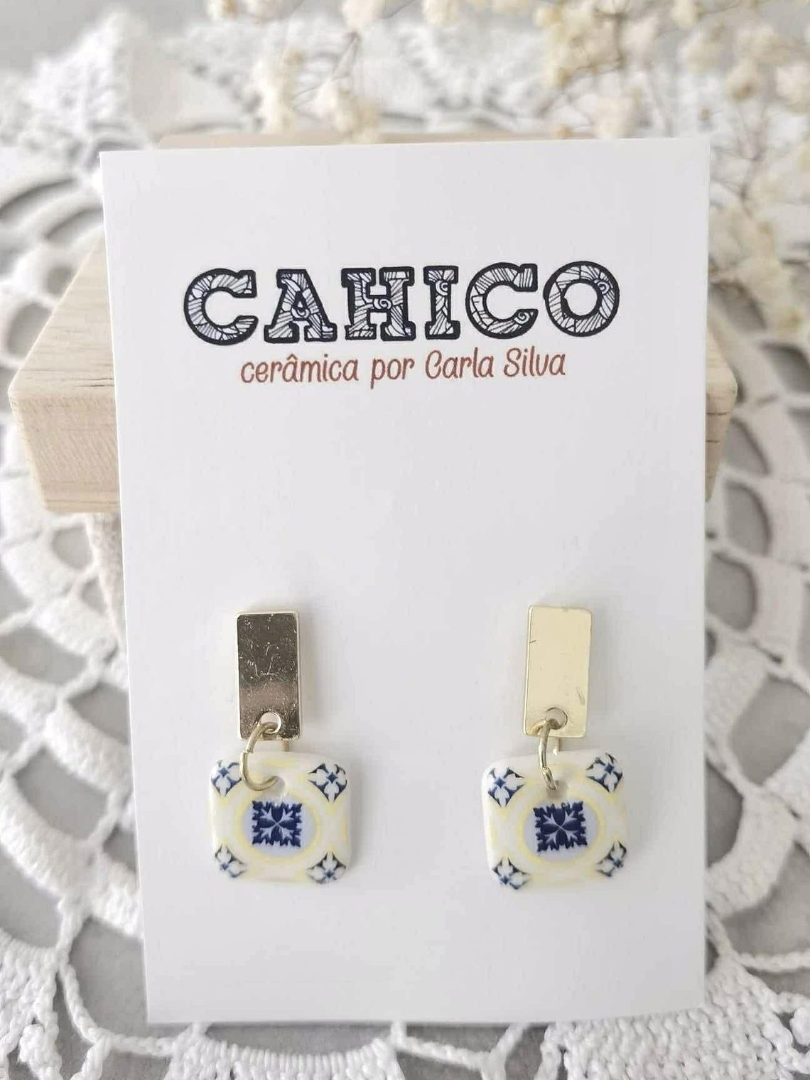 Um delicado quadrado de porcelana feita à mão, com 12mm de detalhe, estampado com um padrão inspirado nos azulejos das ruas de Lisboa.