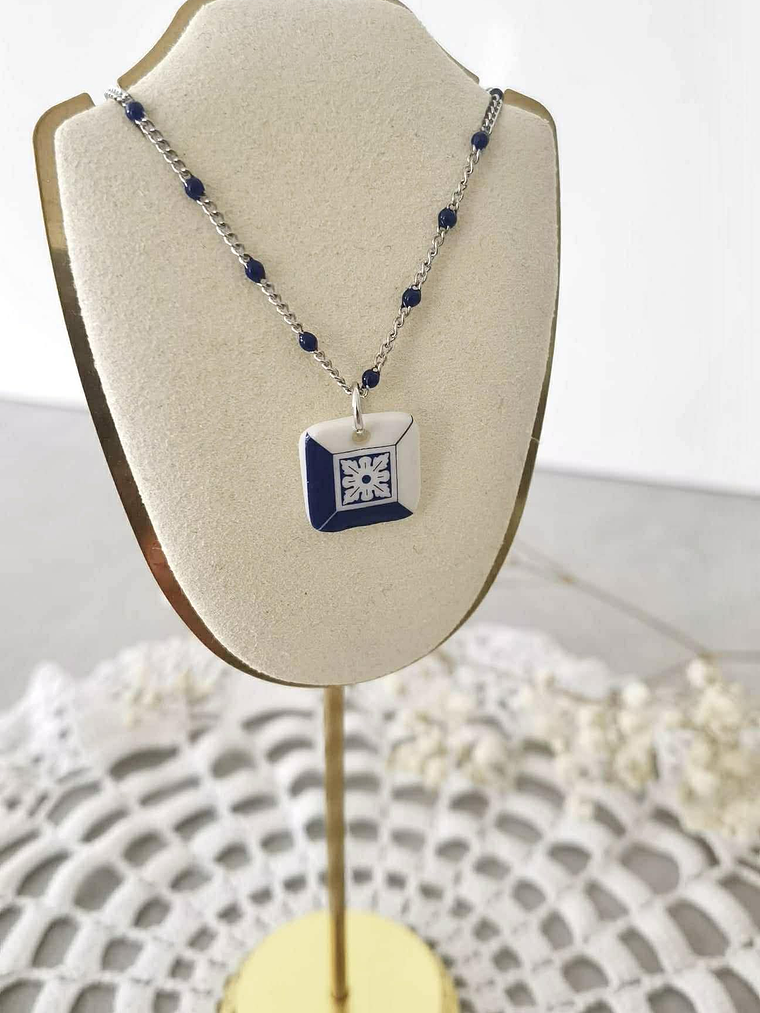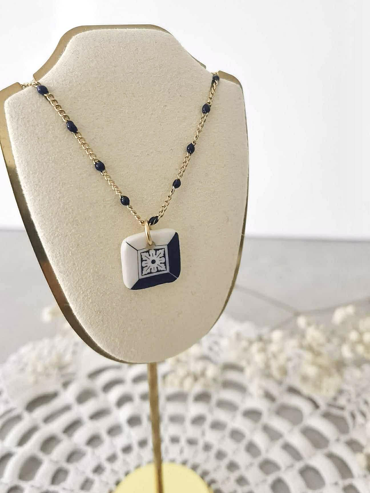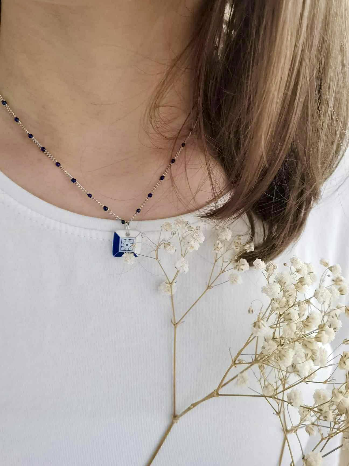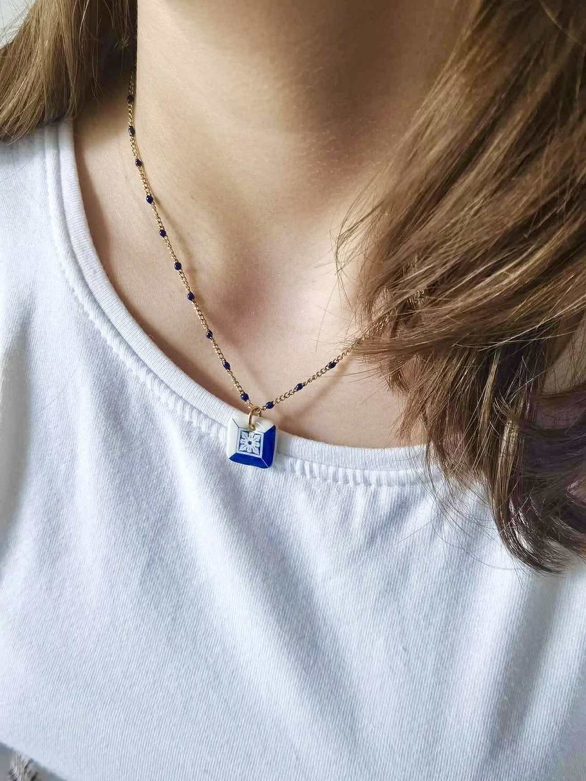 Um delicado quadrado de porcelana feita à mão, com 12mm de puro detalhe, estampado com um padrão inspirado nos azulejos das ruas de Lisboa. Cada peça é única — uma homenagem à beleza intemporal da cidade.