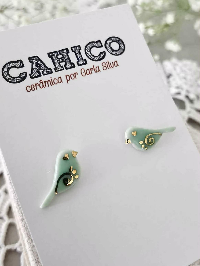Peça de porcelana feita à mão, com 1,5 cm, vidrado colorido e pintura manual com ouro líquido de 12 quilates.