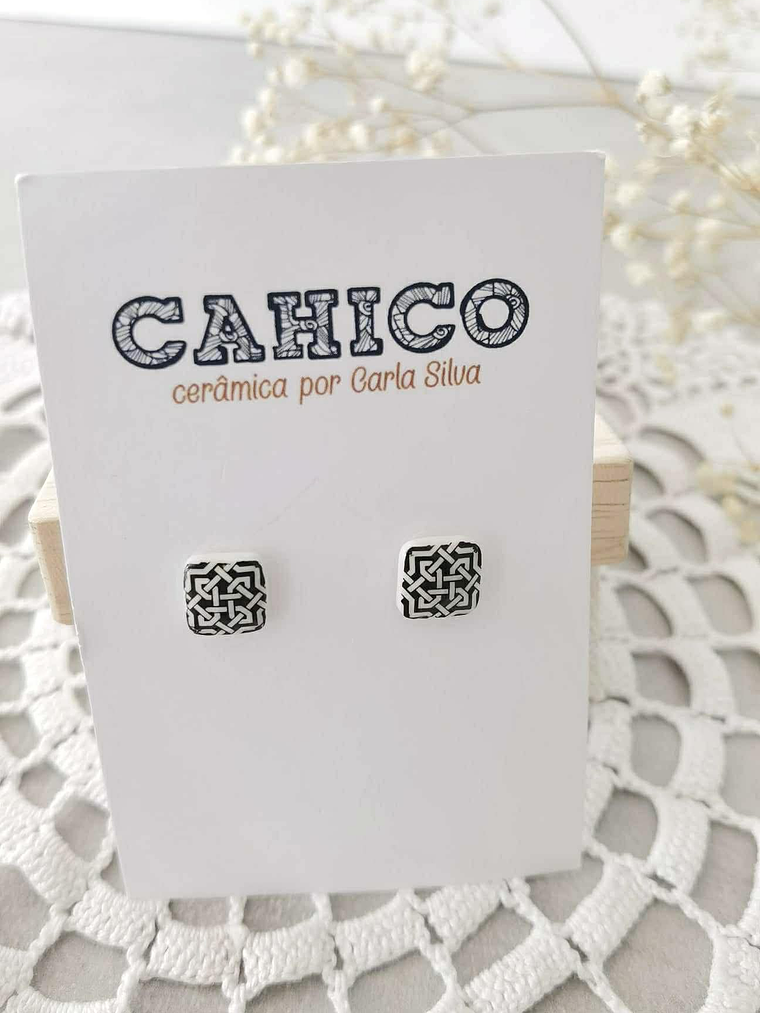 Um delicado quadrado de porcelana feita à mão, com 8mm de detalhe, estampado com um padrão inspirado na calçada portuguesa.