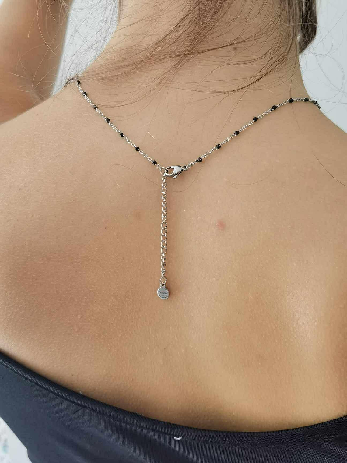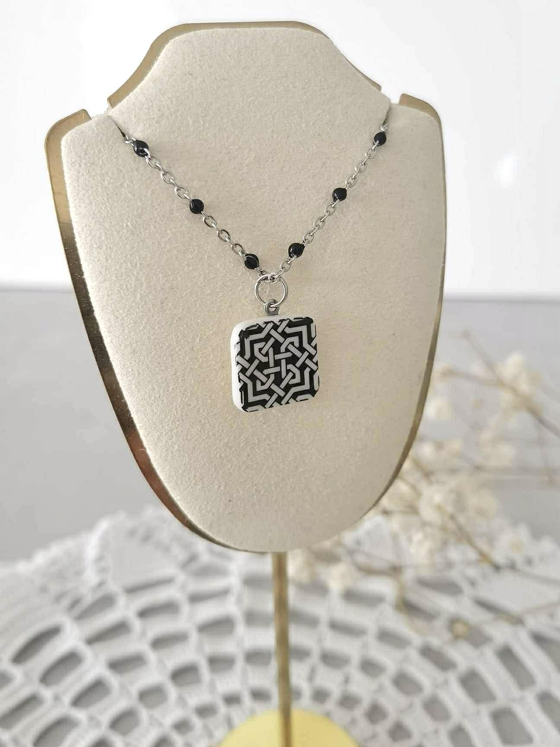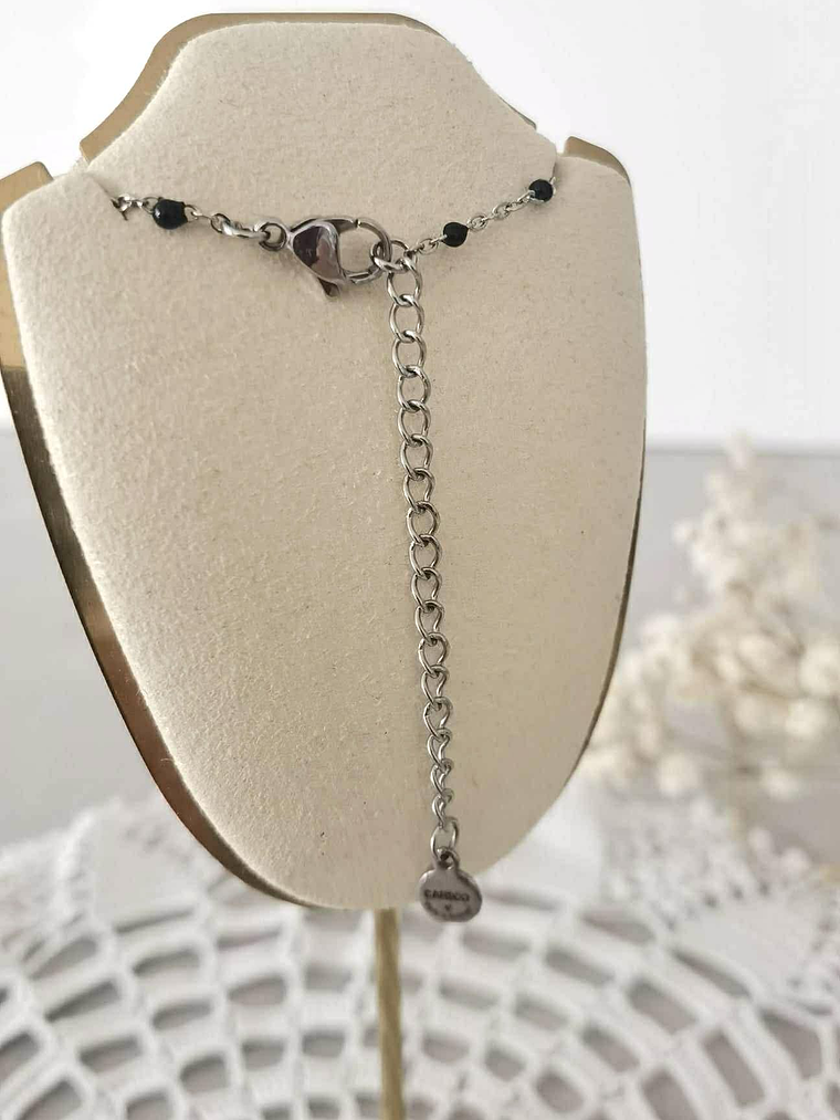 A corrente em aço inoxidável, de 45 cm (+ 10 cm de extensão), é anti-alérgica e sem níquel, pensada para um uso confortável e duradouro.A calçada original pode ser vista ao vivo na Praça dos Restauradores — Lisboa, Portugal.