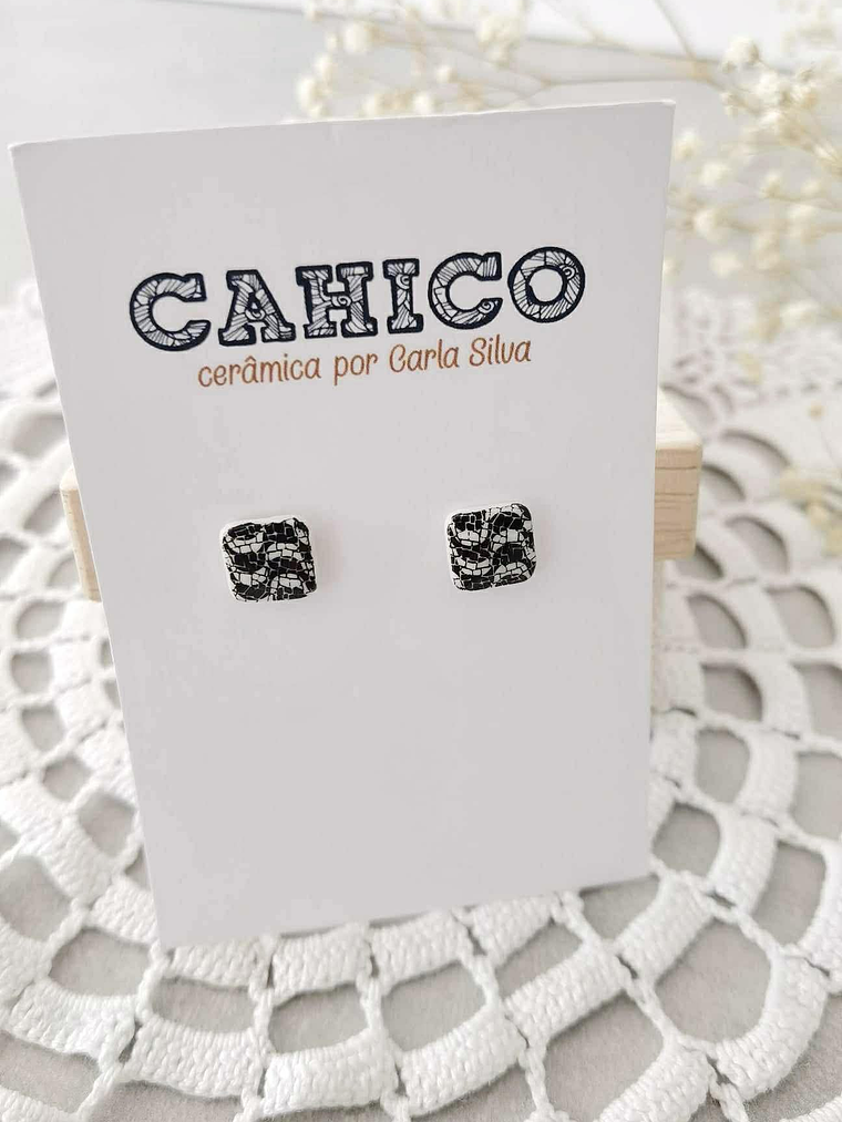 Um delicado quadrado de porcelana feita à mão, com 8mm de detalhe, estampado com um padrão inspirado na calçada portuguesa.